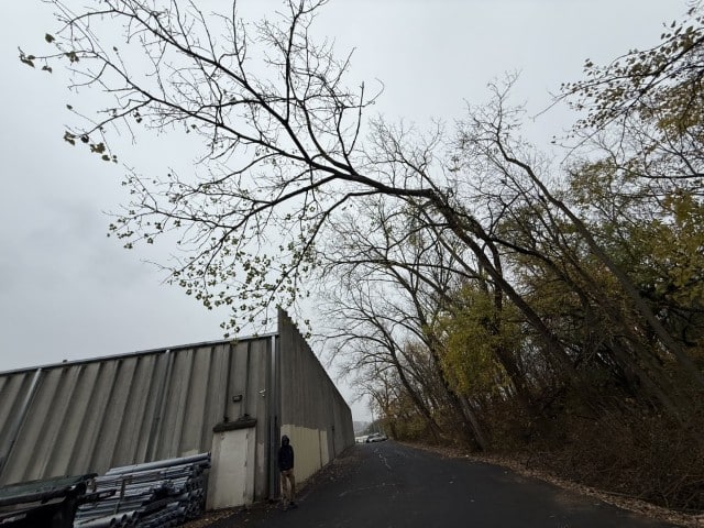 When several large Eastern Cottonwoods began leaning toward a nearby building, the risk became too great to ignore. These trees were in decline, structurally compromised, and positioned in a way that made traditional felling unsafe. Protecting the structure—and the people inside it—required a thoughtful, controlled solution.