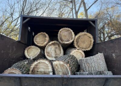 When several large Eastern Cottonwoods began leaning toward a nearby building, the risk became too great to ignore. These trees were in decline, structurally compromised, and positioned in a way that made traditional felling unsafe. Protecting the structure—and the people inside it—required a thoughtful, controlled solution.